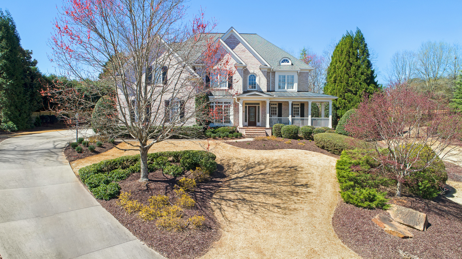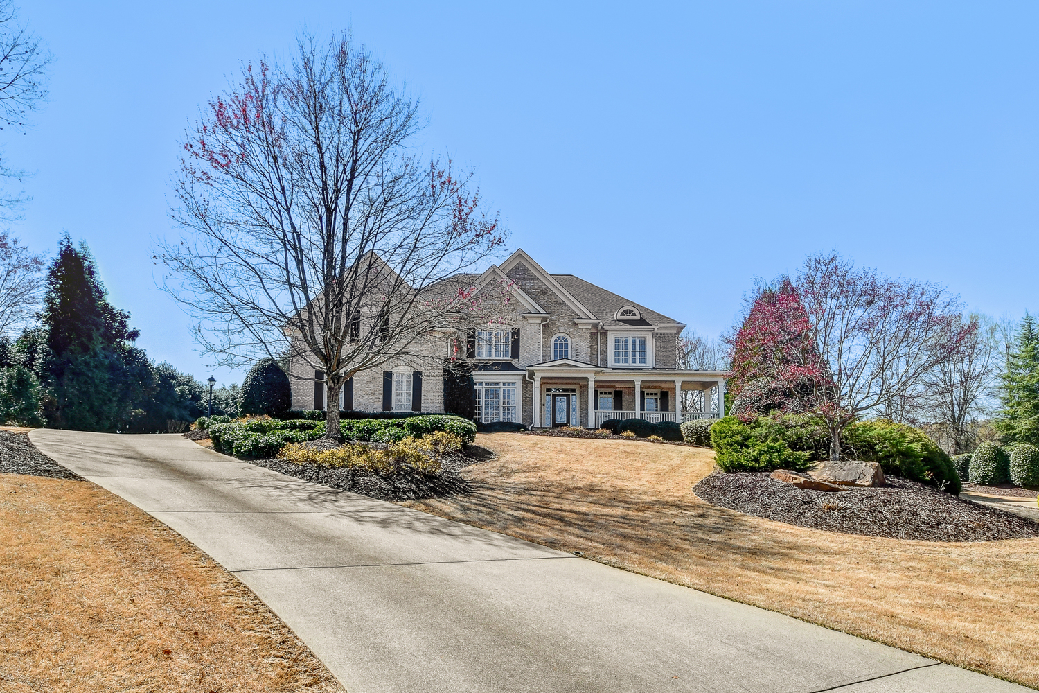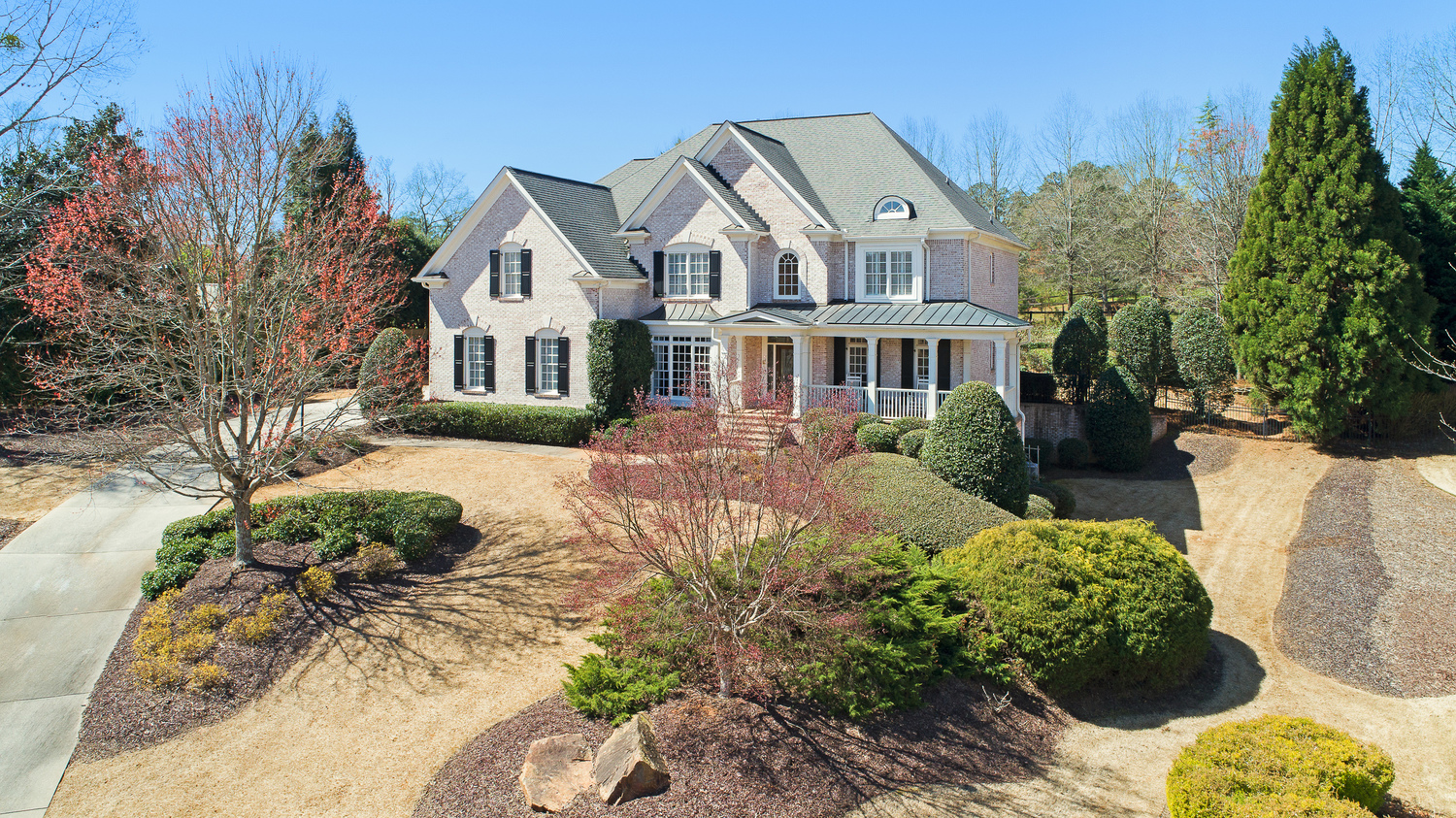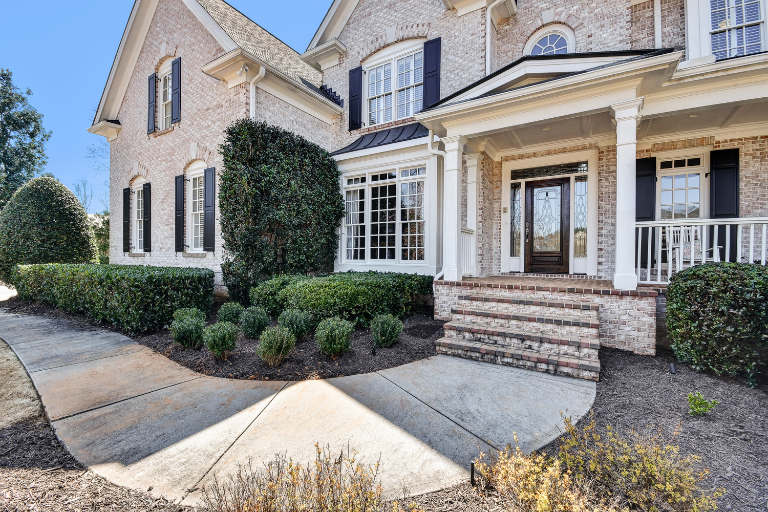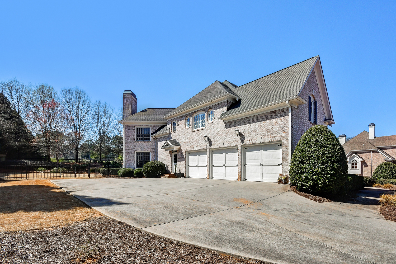 Elegance abounds in this 5 bed/5 bath, 4-sides brick estate in guard gated White Columns. Salt water heated Pebble Tec pool in fenced backyard. Gorgeous view of horse farm behind house. Walk out b'yard, large screened patio, huge open kitchen, fireside keeping rm. Guest ste on main. All hardwoods on main. Oversized master w/stone fireplace overlooking flat backyard. Large master spa w/custom his/her walk-in closets.Fin basement boasts game rm, movie rm, full bath, potential 6th bedrm. Whole-house audio throughout all 3 levels.200' fenced dog run. Top schools