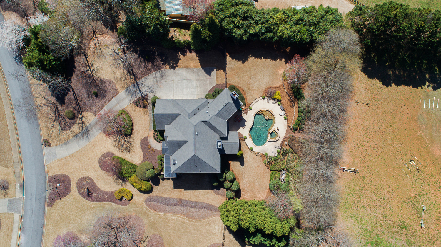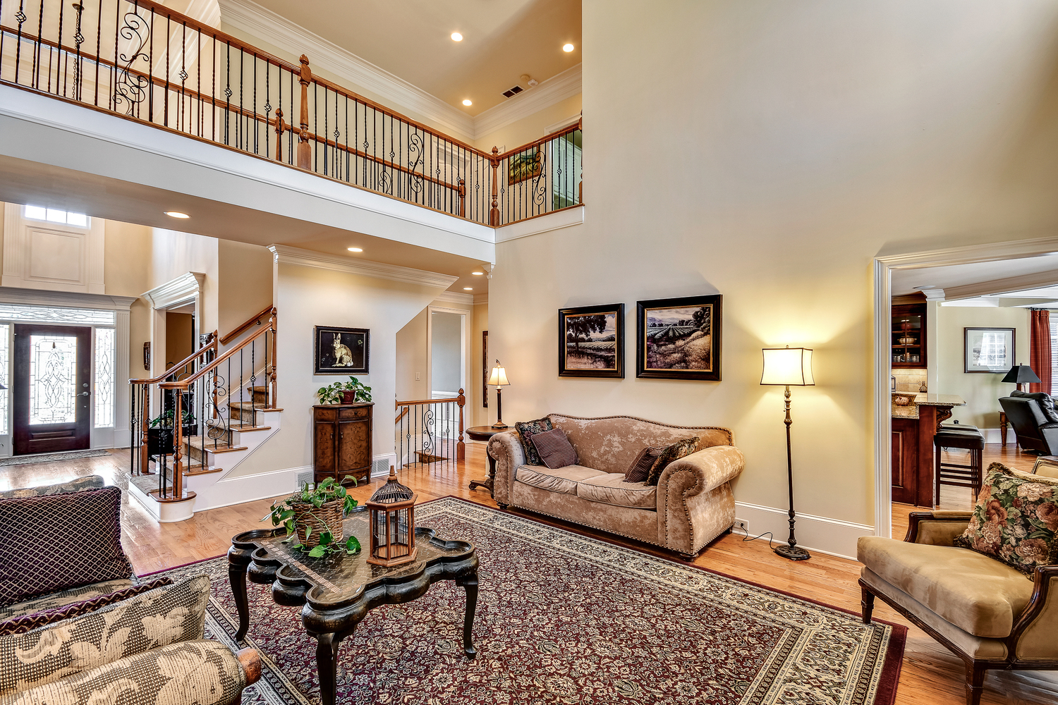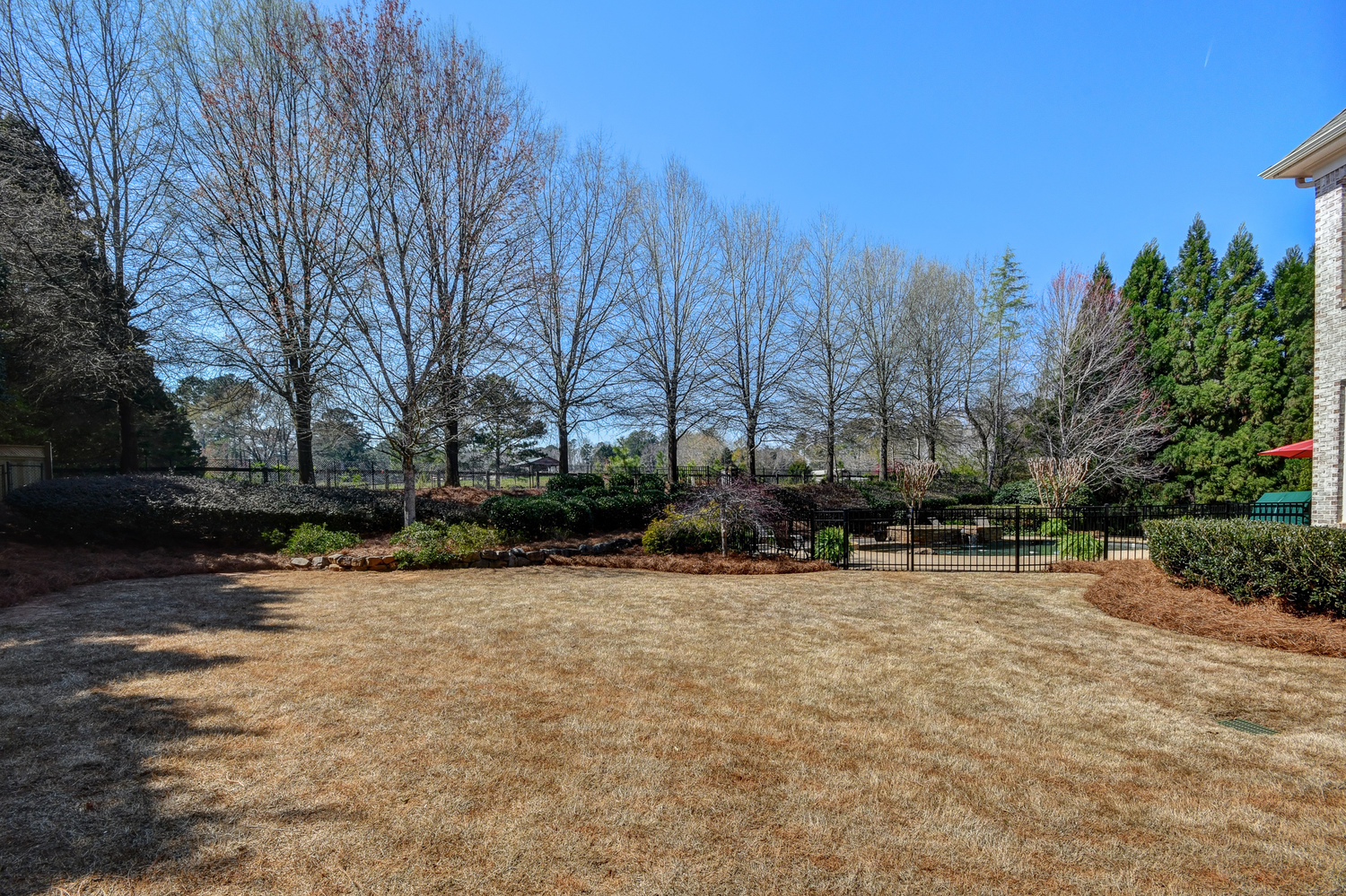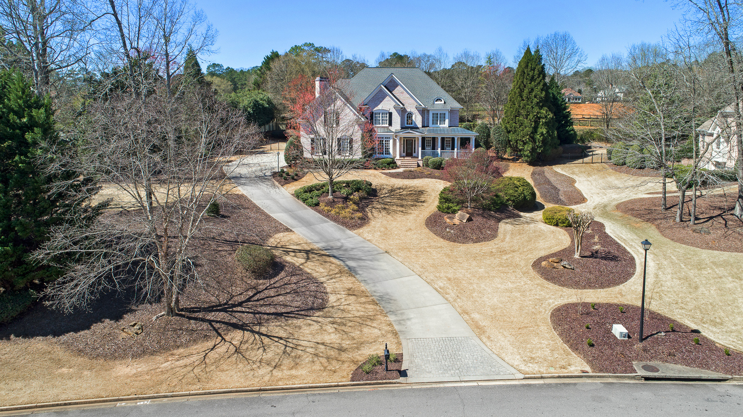 Elegance abounds in this 5 bed/5 bath, 4-sides brick estate in guard gated White Columns. Salt water heated Pebble Tec pool in fenced backyard. Gorgeous view of horse farm behind house. Walk out b'yard, large screened patio, huge open kitchen, fireside keeping rm. Guest ste on main. All hardwoods on main. Oversized master w/stone fireplace overlooking flat backyard. Large master spa w/custom his/her walk-in closets.Fin basement boasts game rm, movie rm, full bath, potential 6th bedrm. Whole-house audio throughout all 3 levels.200' fenced dog run. Top schools
