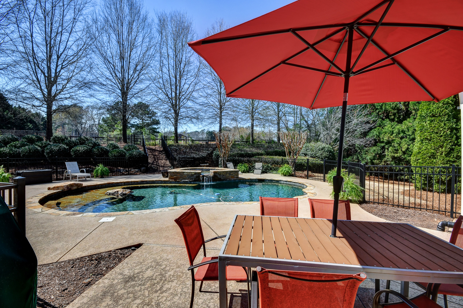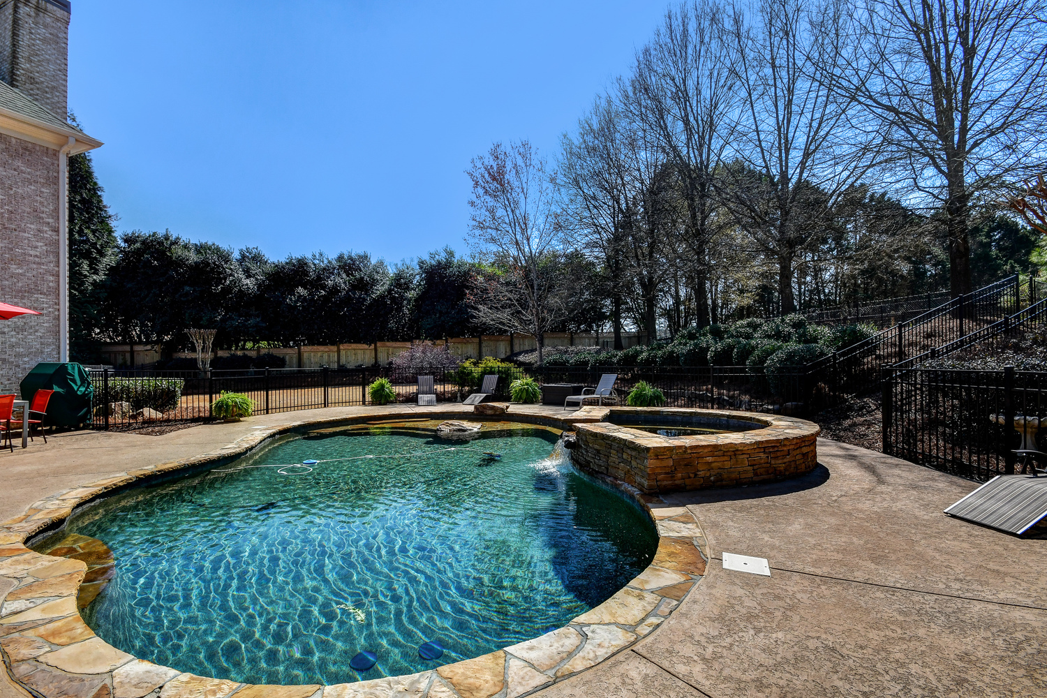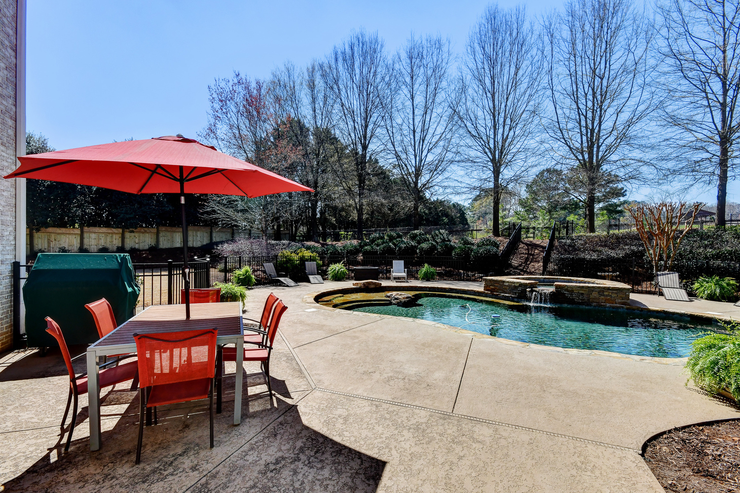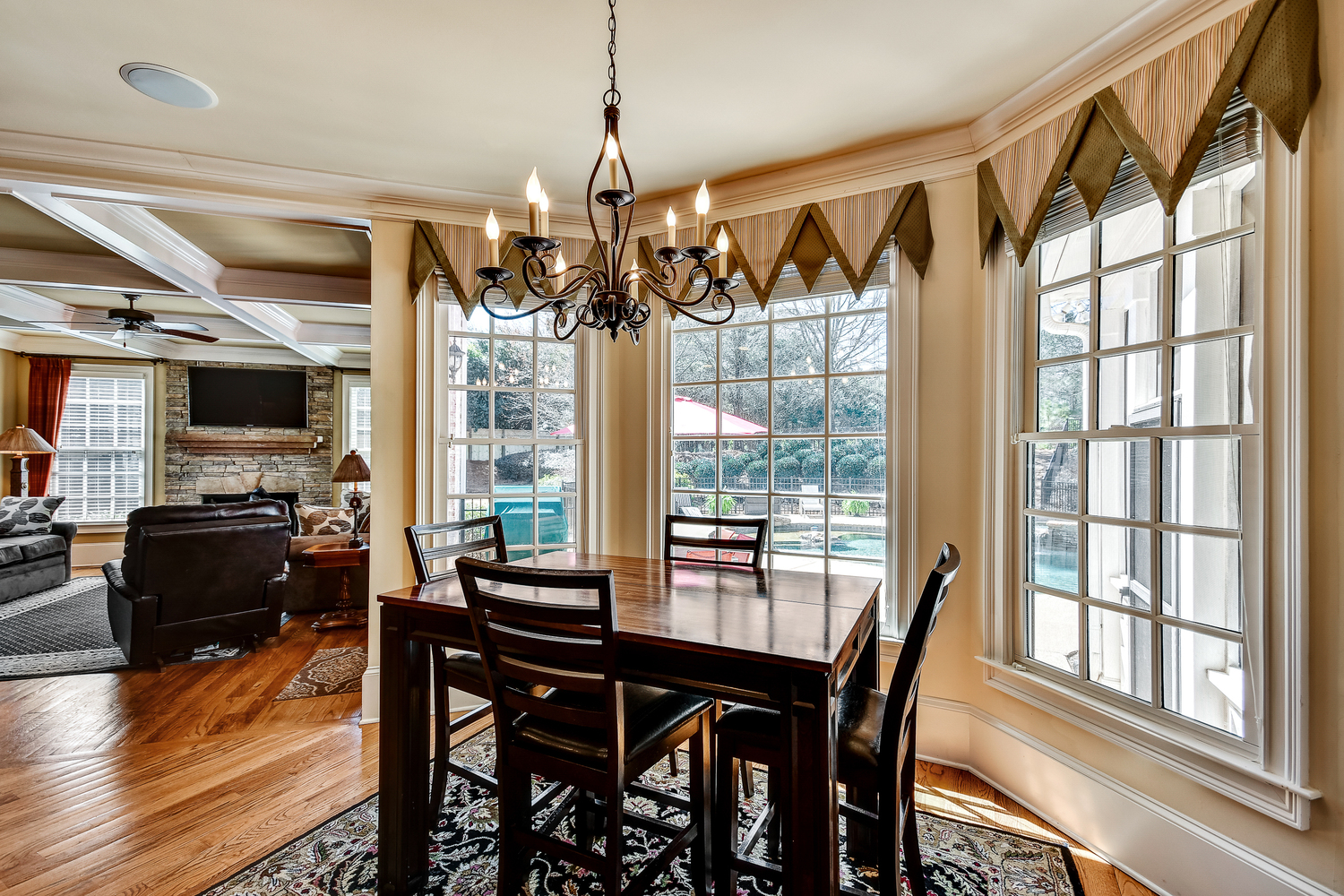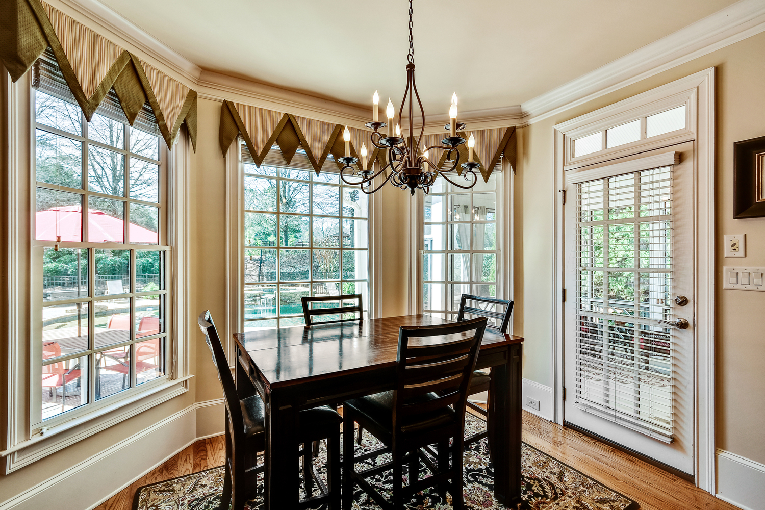 Elegance abounds in this 5 bed/5 bath, 4-sides brick estate in guard gated White Columns. Salt water heated Pebble Tec pool in fenced backyard. Gorgeous view of horse farm behind house. Walk out b'yard, large screened patio, huge open kitchen, fireside keeping rm. Guest ste on main. All hardwoods on main. Oversized master w/stone fireplace overlooking flat backyard. Large master spa w/custom his/her walk-in closets.Fin basement boasts game rm, movie rm, full bath, potential 6th bedrm. Whole-house audio throughout all 3 levels.200' fenced dog run. Top schools