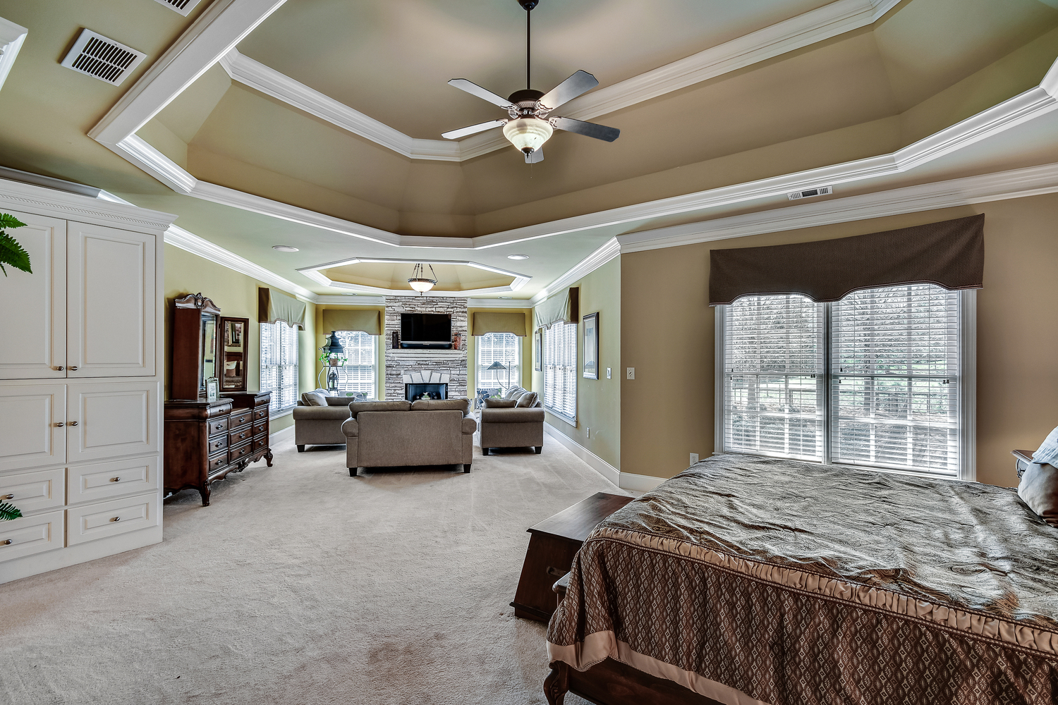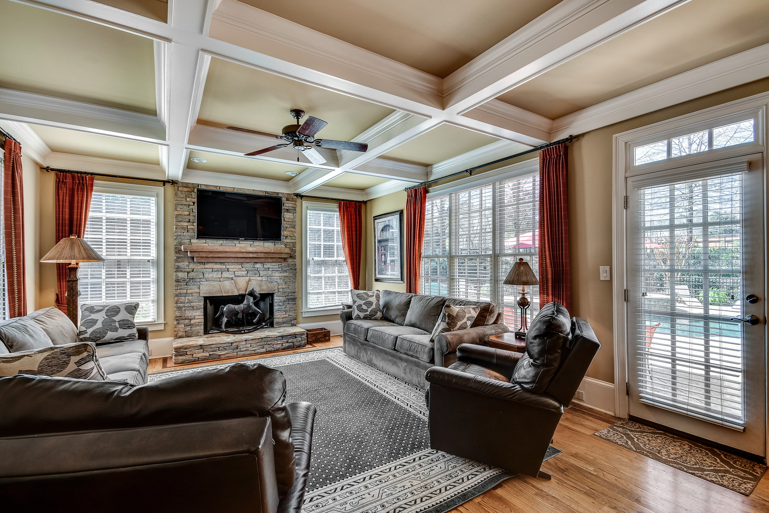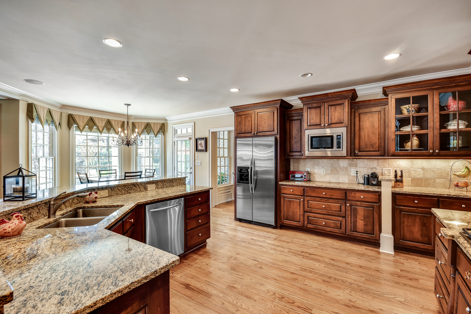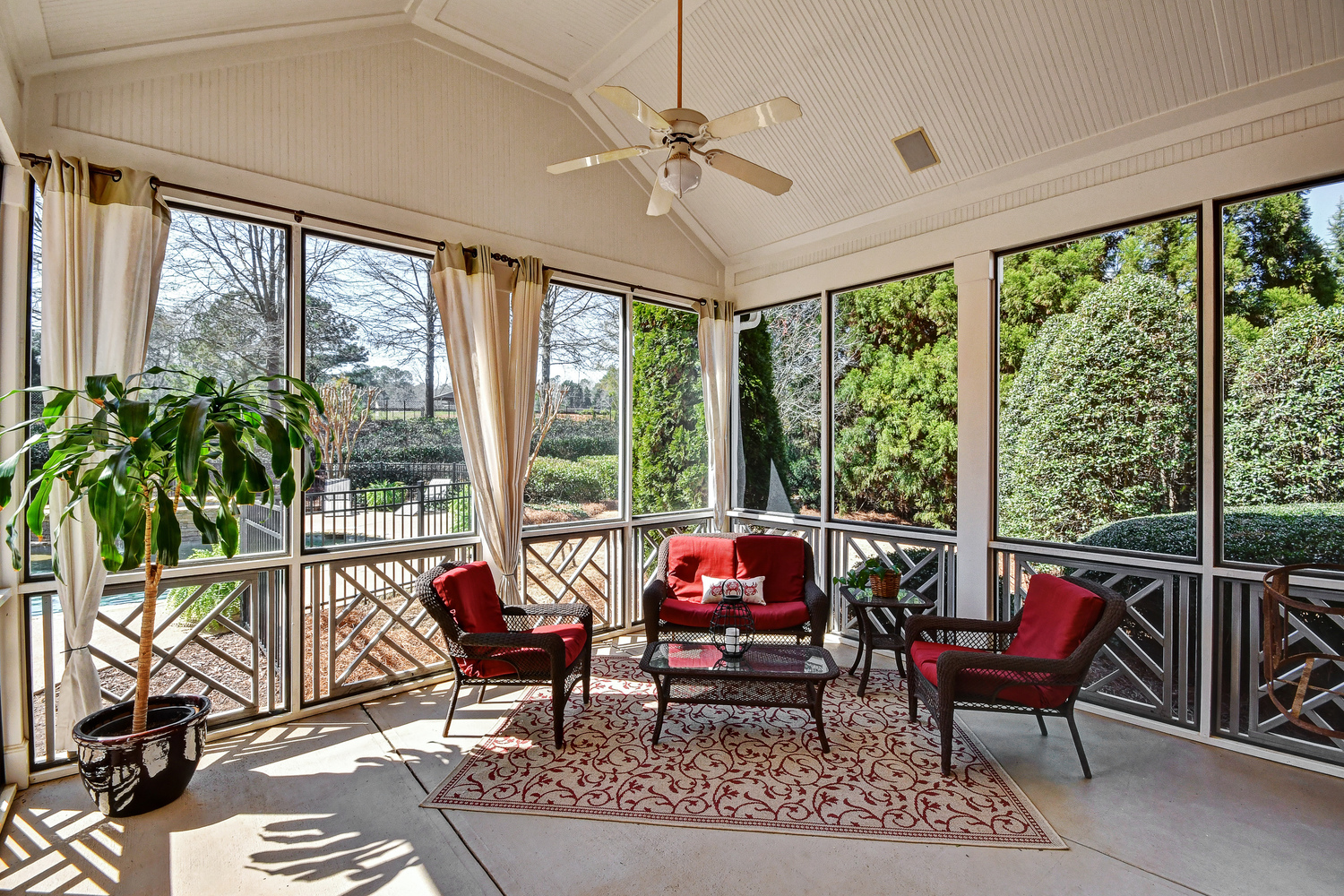 Elegance abounds in this 5 bed/5 bath, 4-sides brick estate in guard gated White Columns. Salt water heated Pebble Tec pool in fenced backyard. Gorgeous view of horse farm behind house. Walk out b'yard, large screened patio, huge open kitchen, fireside keeping rm. Guest ste on main. All hardwoods on main. Oversized master w/stone fireplace overlooking flat backyard. Large master spa w/custom his/her walk-in closets.Fin basement boasts game rm, movie rm, full bath, potential 6th bedrm. Whole-house audio throughout all 3 levels.200' fenced dog run. Top schools