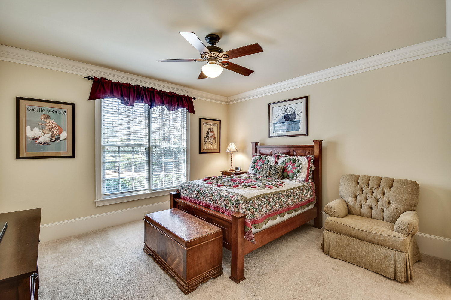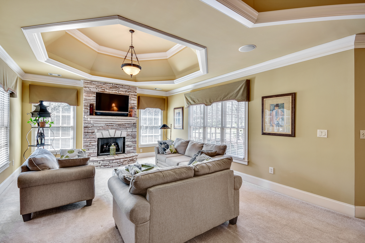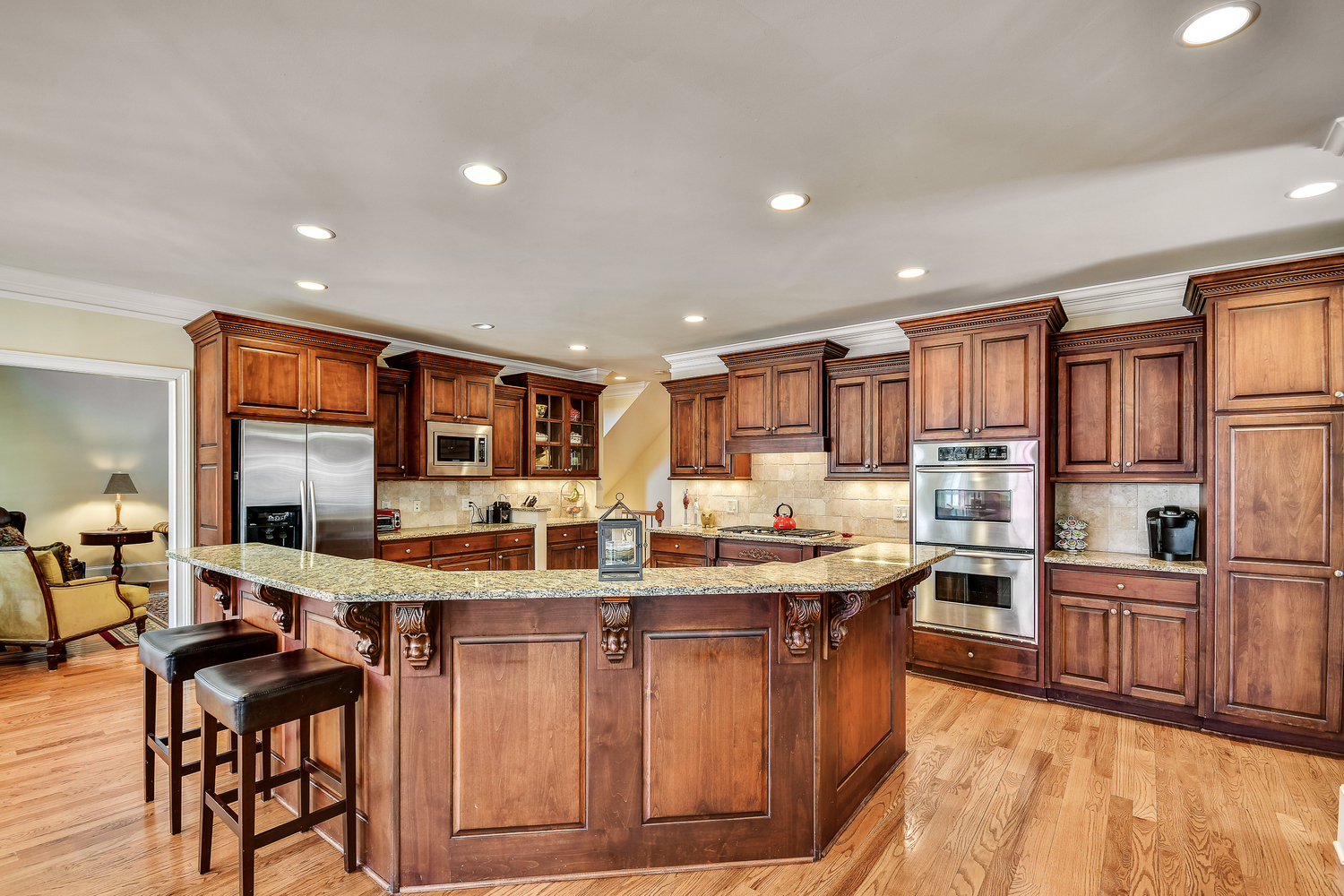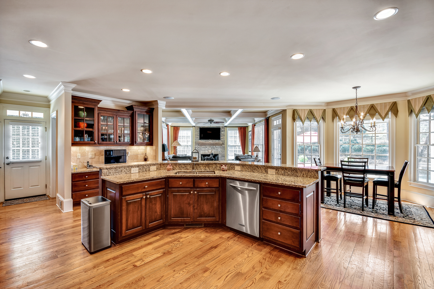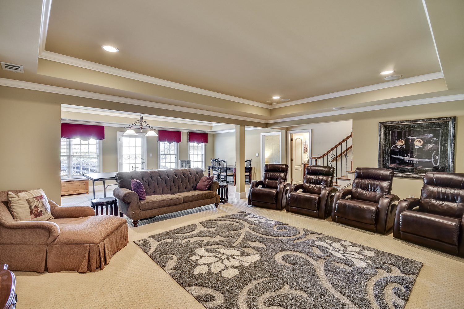 Elegance abounds in this 5 bed/5 bath, 4-sides brick estate in guard gated White Columns. Salt water heated Pebble Tec pool in fenced backyard. Gorgeous view of horse farm behind house. Walk out b'yard, large screened patio, huge open kitchen, fireside keeping rm. Guest ste on main. All hardwoods on main. Oversized master w/stone fireplace overlooking flat backyard. Large master spa w/custom his/her walk-in closets.Fin basement boasts game rm, movie rm, full bath, potential 6th bedrm. Whole-house audio throughout all 3 levels.200' fenced dog run. Top schools