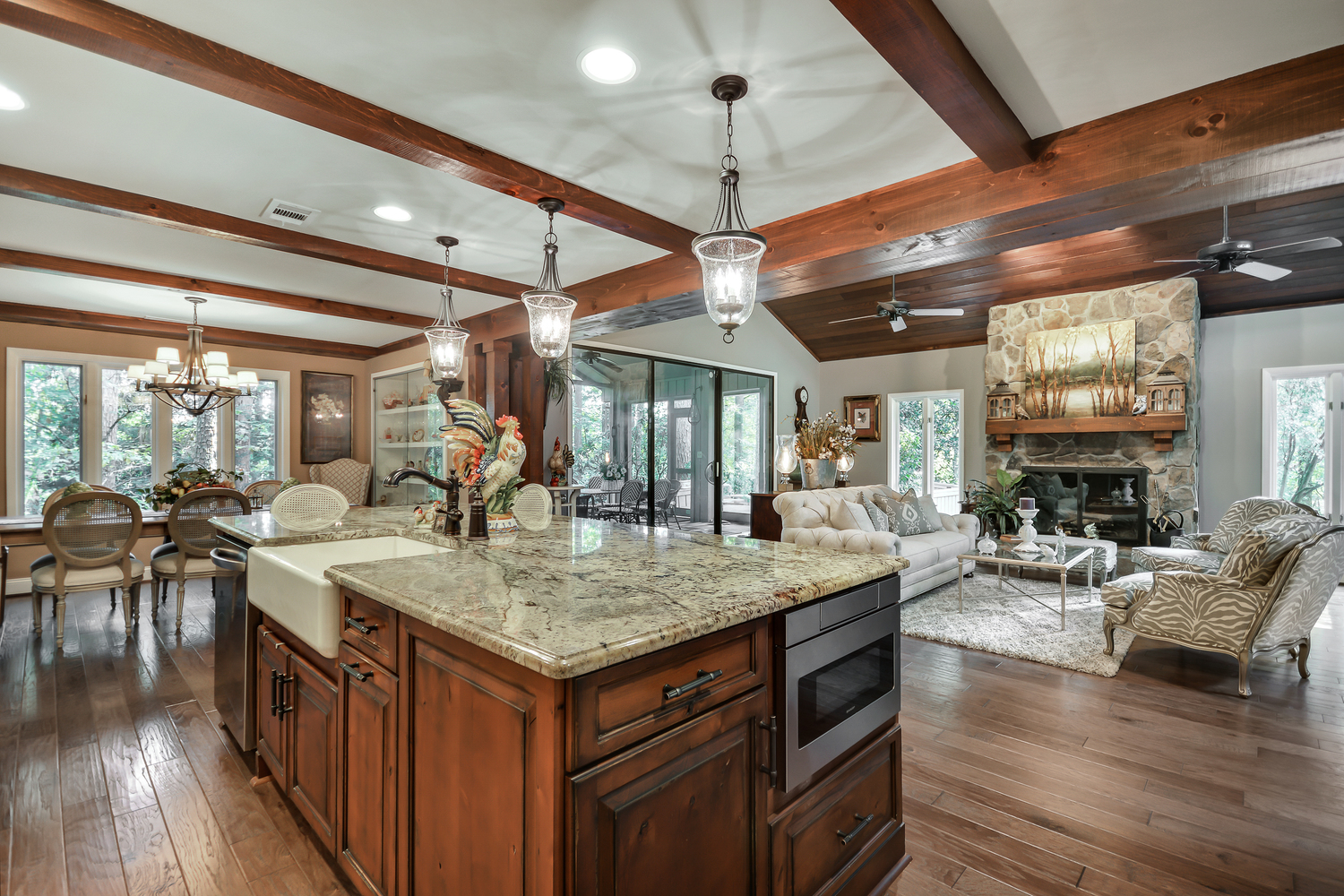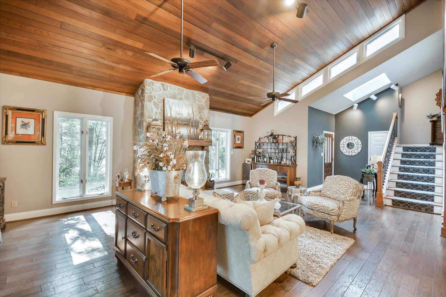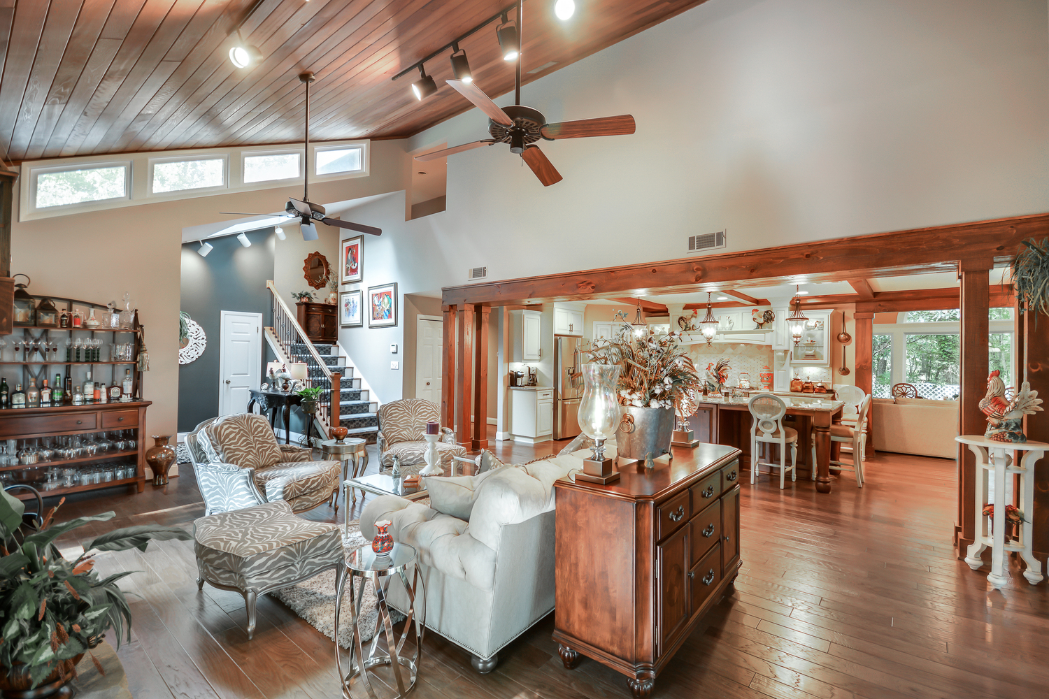 Upscale country estate on 40.94 acres suitable for multiple use, water on property, potential for income with additional garage apartment. Now where to begin- the home sit's back off the road and steps back to a more stress free living with it's lazy porch's overlooking many acres of prestine pasture and wooded privacy. Inside the owners have spared no expense with an updated kitchen, custom cabinetry, 36" farm sink w/apron, brazilian custom granite,new stainless appliances, walk-in pantry, gorgeous ceiling beams, glass built in cabinetry. New hardwood floors thru-out, ceramic floors bathrooms and laundry. Bath's all updated granite counters, rain glass door tub. New building 26 X 26 finished w\upstairs w\full bath, lean to 20 X 20 on side