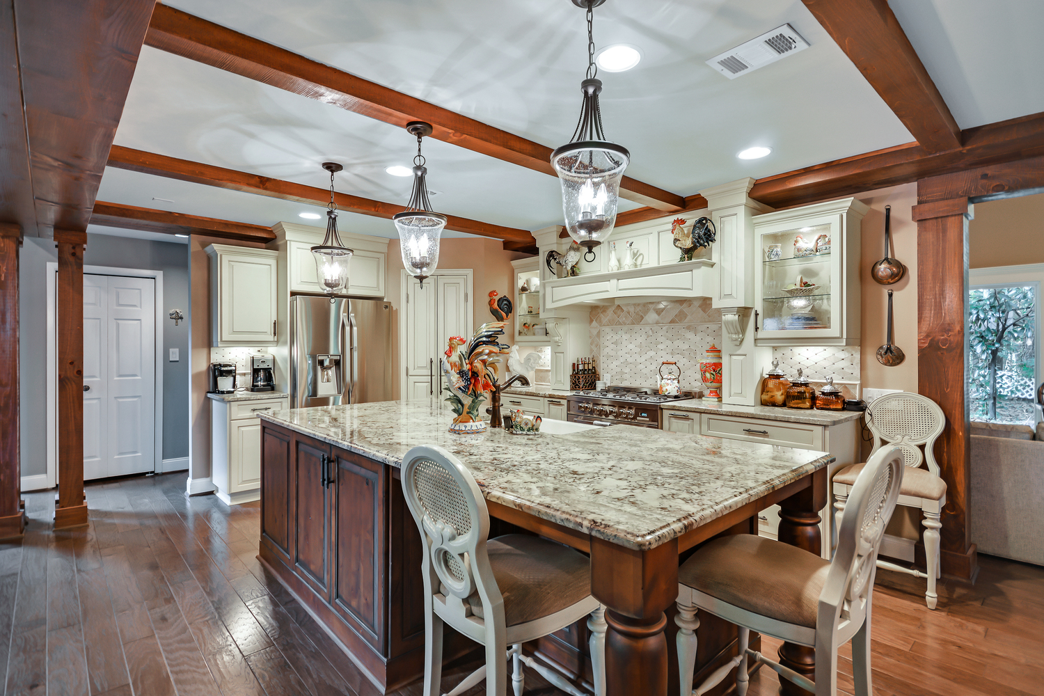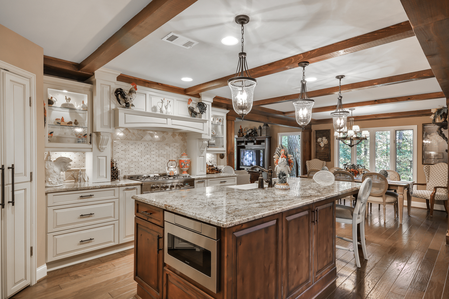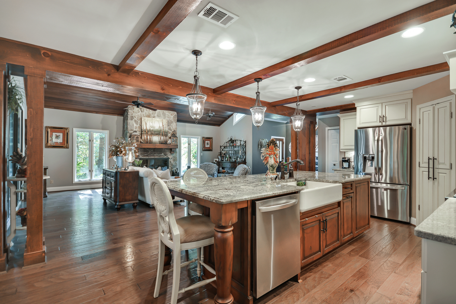 Upscale country estate on 40.94 acres suitable for multiple use, water on property, potential for income with additional garage apartment. Now where to begin- the home sit's back off the road and steps back to a more stress free living with it's lazy porch's overlooking many acres of prestine pasture and wooded privacy. Inside the owners have spared no expense with an updated kitchen, custom cabinetry, 36" farm sink w/apron, brazilian custom granite,new stainless appliances, walk-in pantry, gorgeous ceiling beams, glass built in cabinetry. New hardwood floors thru-out, ceramic floors bathrooms and laundry. Bath's all updated granite counters, rain glass door tub. New building 26 X 26 finished w\upstairs w\full bath, lean to 20 X 20 on side