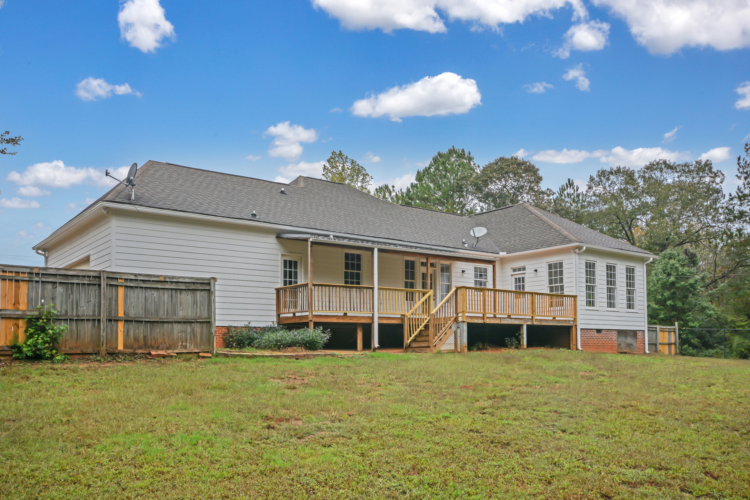 FANTASTIC RECENTLY RENOVATED RANCH ON 2.33 +/- ACRES!! Spacious Kitchen w/ brand new stainless appliances, breakfast bar & area & hardwood floors! Family Room w/ gas fireplace w/ built-in & hardwood floors! Master on main w/ walk-in closet & master bath w/ tiled countertop vanity, jetted tub w/ tiled surround & separate shower! 2 guest bedrooms w/ ceiling fans & closets w/ guest bathroom w/ vanity & shower/tub. Front and rear rocking chair porches w/ a deck on the back overlooking fenced backyard! Split bedroom plan & real hardwood flooring throughout & tiled floors! New interior & exterior paint, new light fixtures!! Move-in ready minutes from I-85 and short drive to Newnan!!