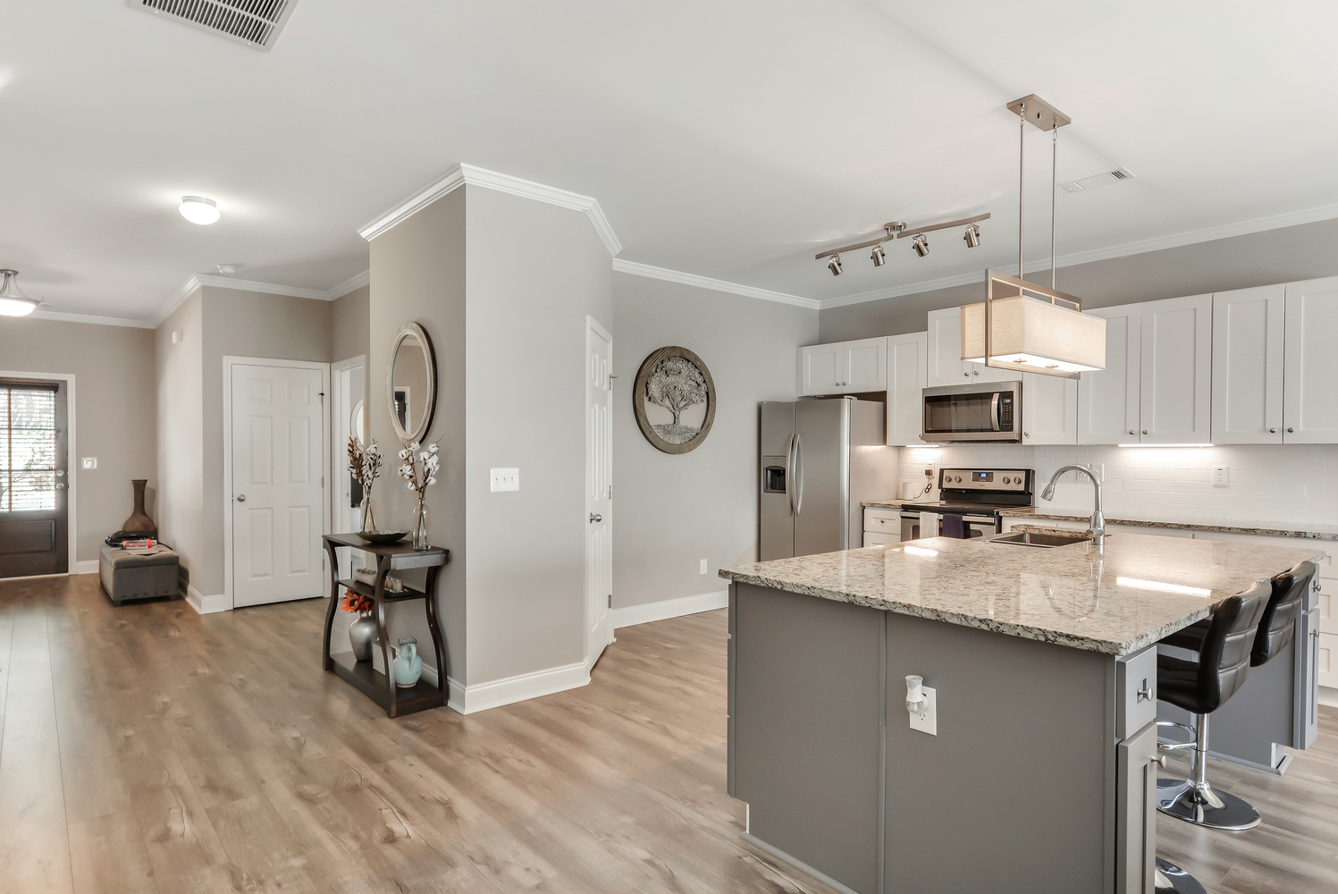 Welcome Home to your spacious 3 story town-home, like new, built-in 2018! Step into your spacious foyer with a bedroom on the main level along with a full bathroom. This home offers scratch-resistant floors on the main level, stainless steel appliances, granite countertops, massive island, master suite, an open floor concept, and high ceilings. This home features a full-size basement, perfect for a Home Movie Theater, a play area, home office or an extra bedroom. Located in the heart of Lilburn, walking distance from schools, restaurants, supermarkets and more. Low HOA!
